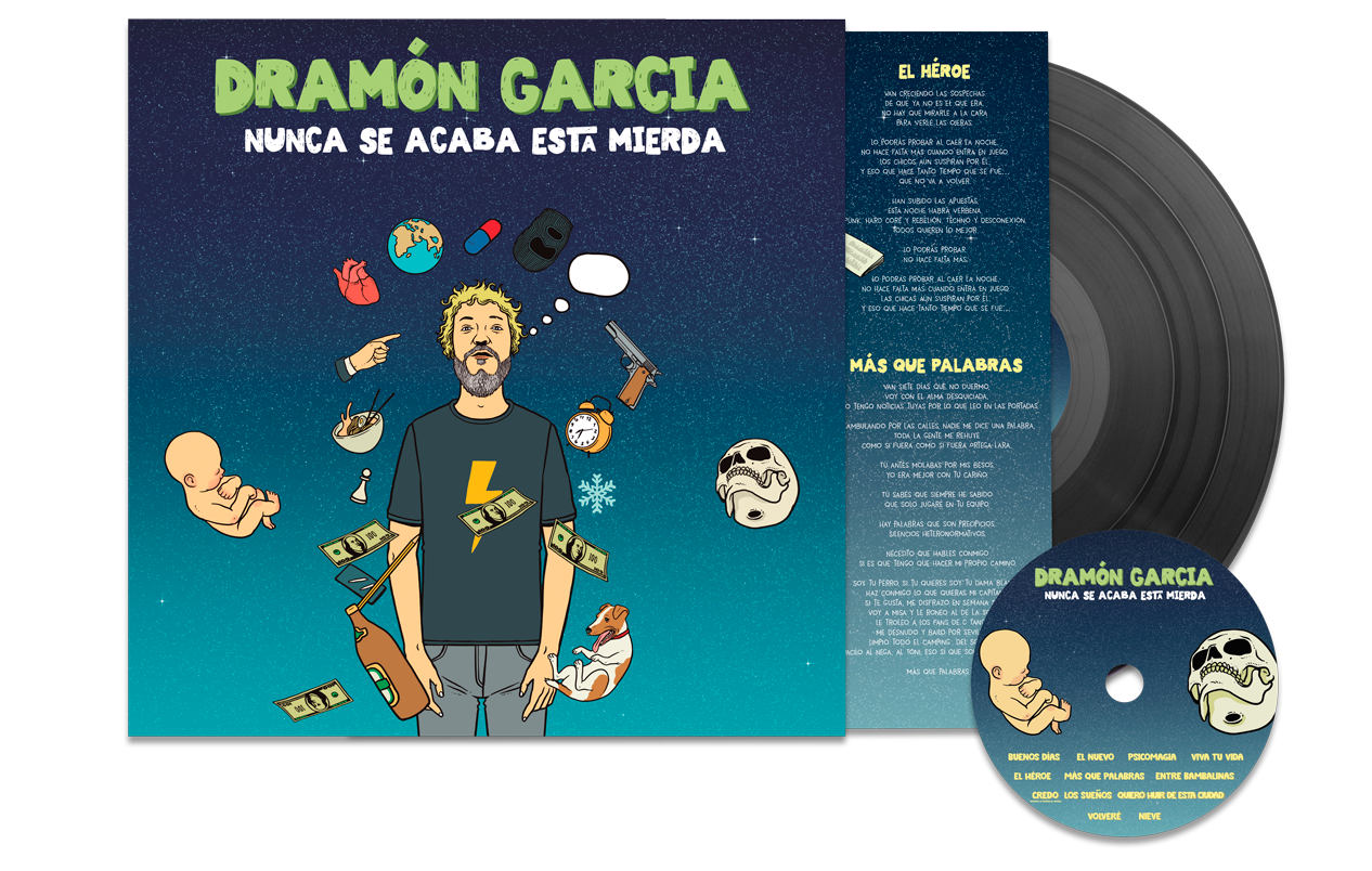 Es un vinilo de 12“ + CD, en formato gatefold y con la funda impresa. El precio de venta es de 25 € para entregas en mano y de 30 € para envíos a península. Si os interesa una copia, podéis encargarla en info@dramongarcia.com o enviando un mensaje privado en Instagram.